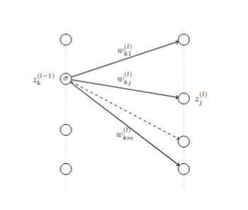 Therefore \[ \frac{\partial z^{(i)}_{t}}{\partial z^{(i-1)}_{k}}= \sigma'(z_{k}^{(i-1)})w_{kt}^{(i)}. \]